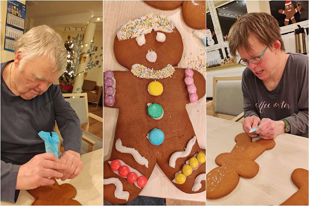 Unsere Kollegin Corina Haltiner hatte die Figuren-Teile spontan mitgebracht und abends hatten Wolfgang Berendsen und Daniela Sassen noch Lust, die Männchen zu süß zu verzieren. Heimlich wurde dabei auch etwas genascht! Eine schöne gemeinsame Aktion in der Vorweihnachtszeit.