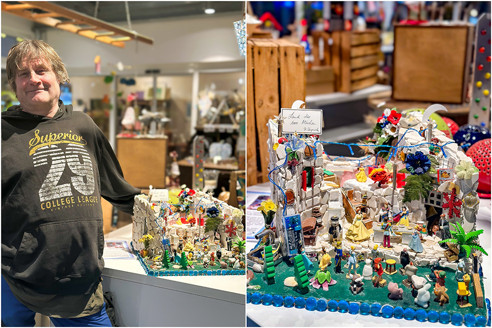 Peter Skopnick lebt in der Wohngruppe der Lebenshilfe Rotenburg-Verden am Magdeburger Ring und arbeitet in der Schlosserei der Lebenshilfe am Westerholzer Weg. Immer wieder kreiert er in seiner Freizeit mit Liebe zum Detail seine Miniaturwelten zu verschiedensten Themen – und mit unterschiedlichsten Materialien. Manchmal hat Peter Skopnick schon eine konkrete Idee, manchmal wächst die aber auch Stück für Stück beim Fortschritt des jeweiligen Baus. Viele Materialien hat er bereits zu Hause, manches bekommt er geschenkt, manches findet er im Sperrmüll und kann es in seinen Werken mit neuem Leben füllen. Damit spielt Nachhaltigkeit eine große Rolle für ihn.
